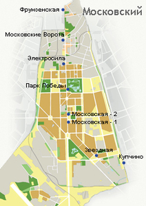 Часть Московского района между проспектами Юрия Гагарина и Космонавтов ограничена Витебским, Дунайским проспектами, Московским шоссе, улицей Орджоникидзе, проспектом Космонавтов, улицей Типанова, проспектом Ю. Гагарина и Бассейной улицей. По составу жилищного фонда территорию можно условно разделить на две.